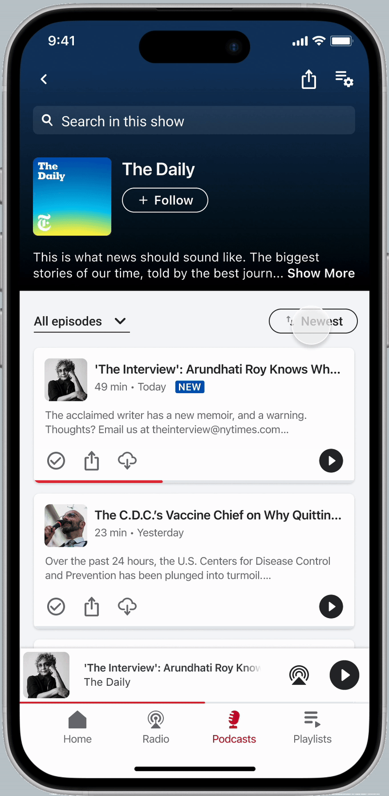 iHeartRadio's podcast platform offers an expansive library, with countless shows containing hundreds, if not thousands, of episodes. Despite this wealth of content, a significant challenge for users has been the lack of intuitive tools for discovering and navigating individual episodes, especially within a particular series. So how can we improve episode discovery and navigation to retain users and keep them engaged?This case study details my approach to redefining the user experience for podcast episode navigation, with a focus on designing and implementing episode-level search and improving backlog navigation on show profile pages and within the global search page.